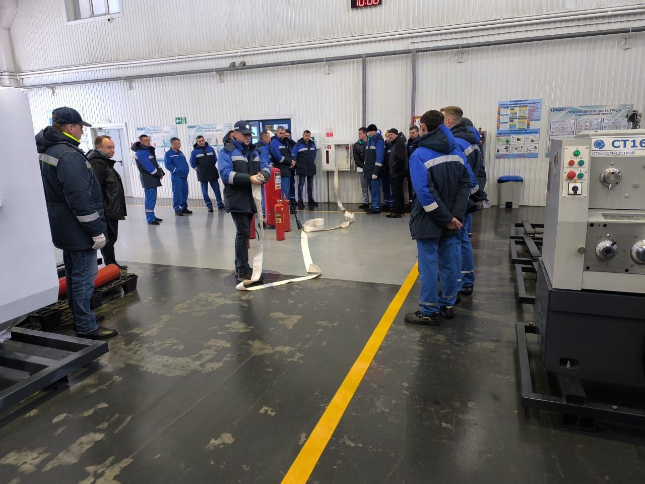 На станкостроительном заводе в Пензе прошла противопожарная тренировка, в ходе которой проверили готовность работников к действиям при чрезвычайных ситуациях. Сотрудникам напомнили основные требования пожарной безопасности, показали расположение огнетушителей, аварийных выключателей и путей эвакуации, а также разобрали особенности пожарных рисков, связанных с производственными процессами.