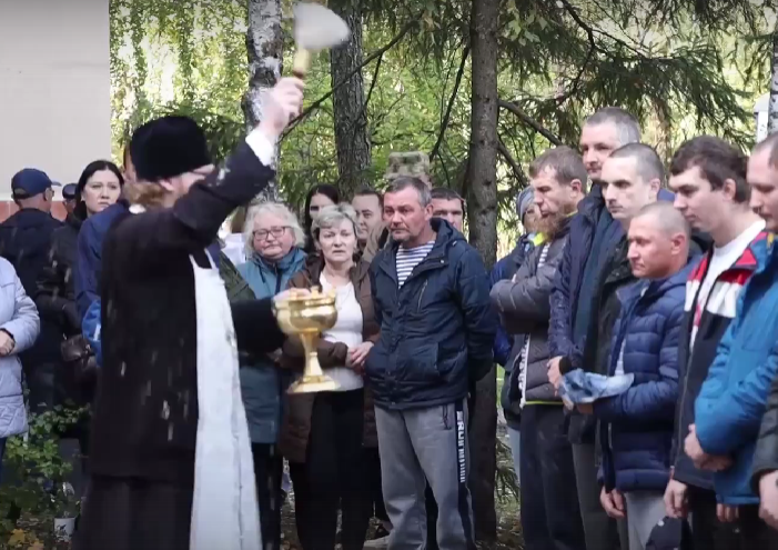 К собравшимся обратились с наставлениями военные комиссары. На проводы пришли родные и близкие, присутствовал священник, который благословил мужчин перед отправлением и окропил святой водой.