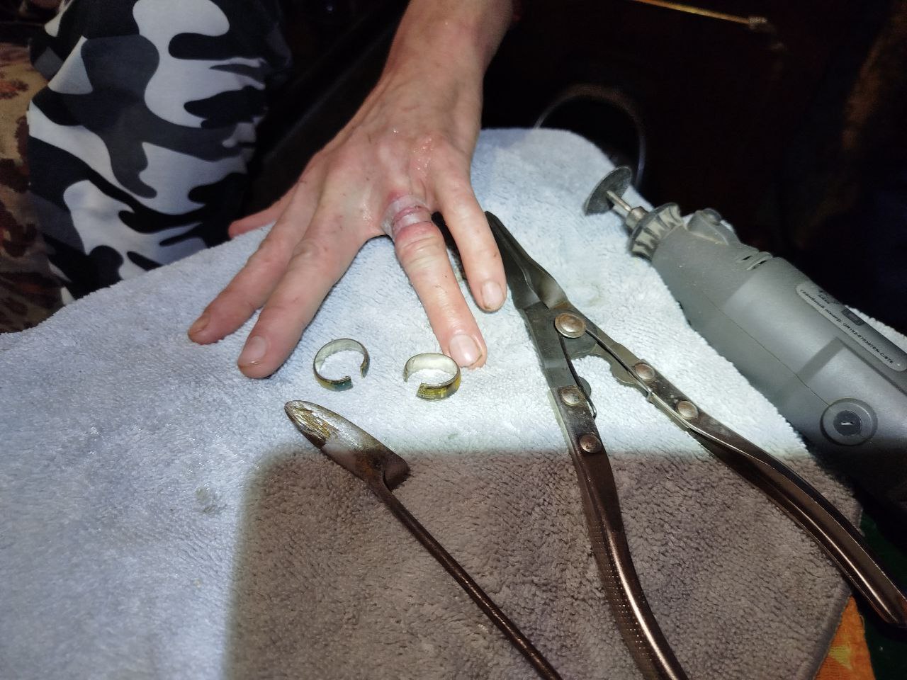 «Прибыв по указанному адресу, спасатели, используя специальный слесарный инструмент, аккуратно сняли кольца с руки мужчины», - сообщили в пресс-службе ГУ «ППСЦ».