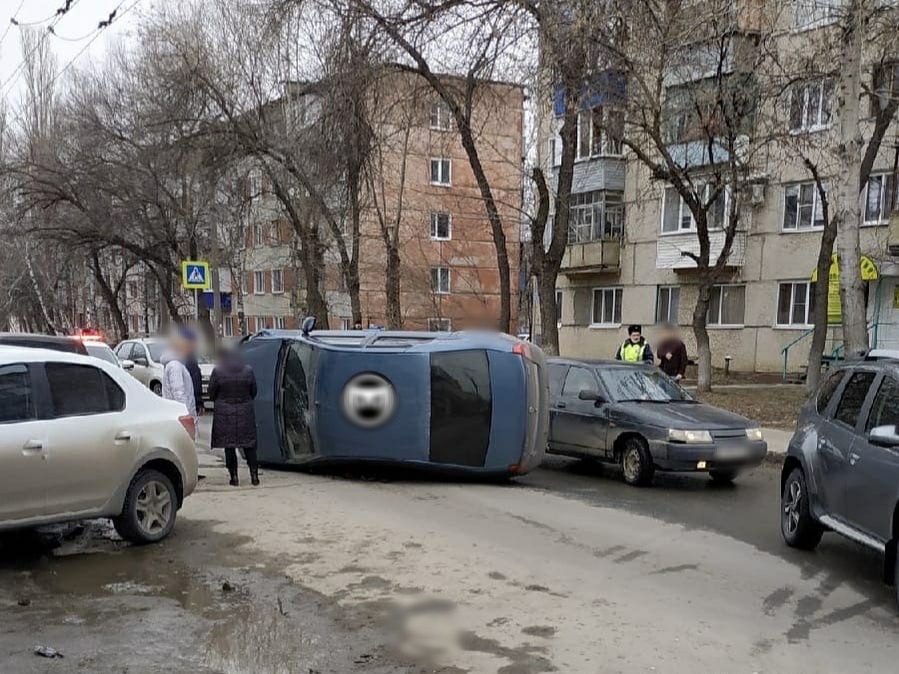 В Пензе машина перевернулась на бок при ДТП