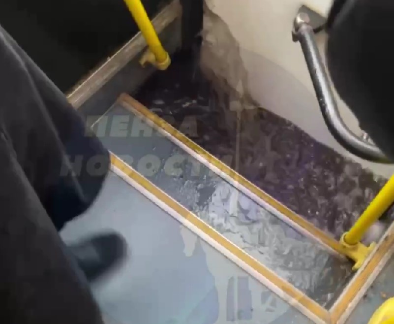 Пензенцы поделились с кадрами с места событий: салон большого пассажирского автобуса стал наполняться водой.
